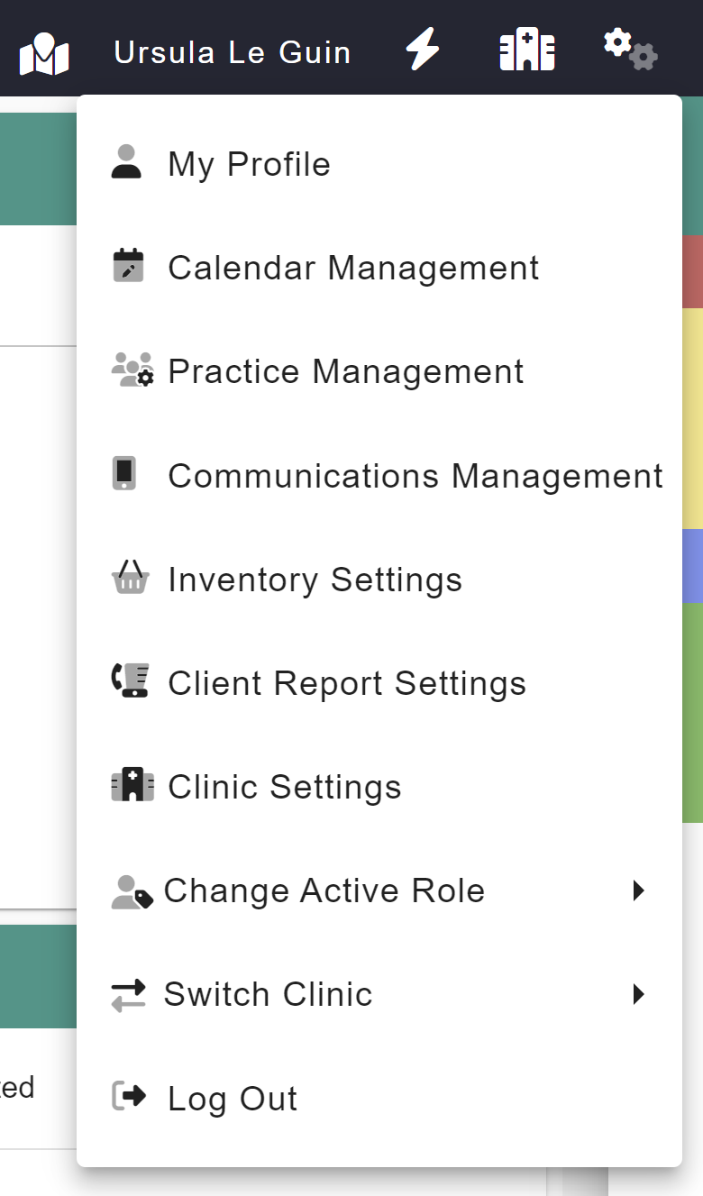 To manage the templates for Client Communications you can open the Message Template manager. This is available by selecting "Communications Management" in the system gear menu in the upper right hand corner of VetBadger.